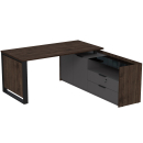 Стол на опорной угловой тумбе с ящиками (метабокс) и замком Венди, цвет брауни + графит