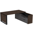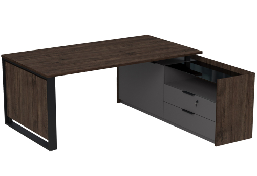 Стол на опорной угловой тумбе с ящиками (метабокс) и замком Венди, цвет брауни + графит