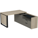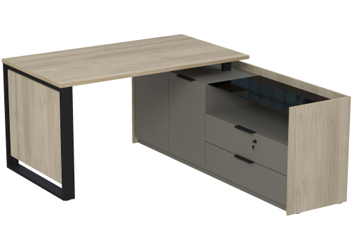 Стол на опорной угловой тумбе с ящиками (метабокс) и замком Венди, цвет светлый дуб + терра
