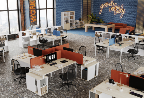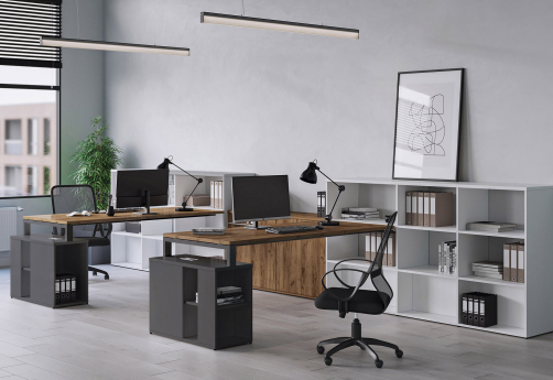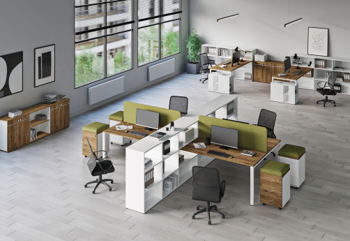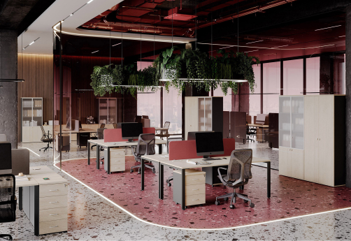 Эрника Металл – проектная серия мебели для персонала, которая поможет оптимально решить дизайнерские задачи. Столы на металлических опорах, оригинальная система шкафов и тумб, варианты комбинации цветов - все это позволяет создать стильный и комфортный офис.