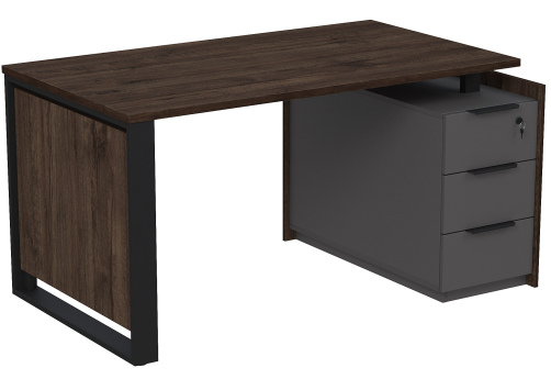 Стол на опорной угловой тумбе с ящиками (метабокс) и замком Венди, цвет брауни + графит