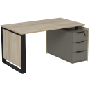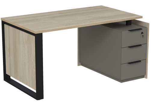 Стол на опорной угловой тумбе с ящиками (метабокс) и замком Венди, цвет светлый дуб + терра