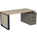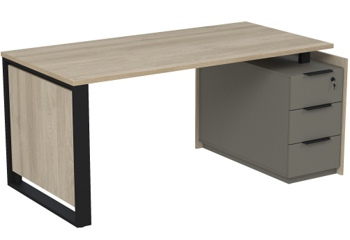 Стол на опорной угловой тумбе с ящиками (метабокс) и замком Венди, цвет светлый дуб + терра