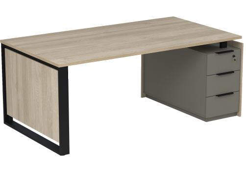 Стол на опорной угловой тумбе с ящиками (метабокс) и замком Венди, цвет светлый дуб + терра