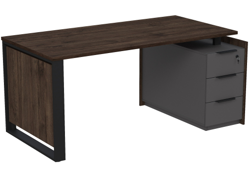 Стол на опорной угловой тумбе с ящиками (метабокс) и замком Венди, цвет брауни + графит
