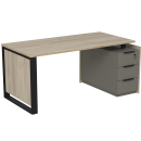 Стол на опорной угловой тумбе с ящиками (метабокс) и замком Венди, цвет светлый дуб + терра