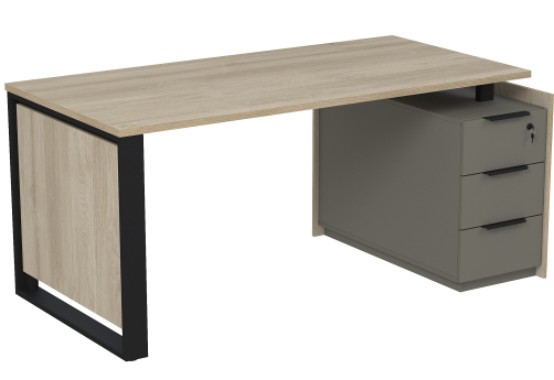 Стол на опорной угловой тумбе с ящиками (метабокс) и замком Венди, цвет брауни + графит