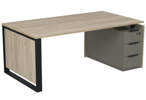Стол на опорной угловой тумбе с ящиками (метабокс) и замком Венди, цвет светлый дуб + терра
