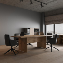 Мебель в кабинет руководителя, выполненная в современном дизайне. Большая линейка рабочих столов: на опорных тумбах, креденциях, столы для переговоров на металлокаркасе. Практичные места для хранения.