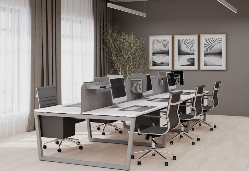 Мебель для персонала Сити Макси 40-Т2 — это серия с большим количеством элементов для обустройства лофтов, опен-спейсов, рабочих кабинетов, переговорных зон в офисе любого дизайна. Столы прямые, эргономичные, бенчи на металлических опорах в форме обратной трапеции, тумбы, приставные элементы, шкафы, стеллажи, а также аксессуары – настольные экраны, кабель-каналы, рамки – все это поможет сделать рабочее место максимально удобным.