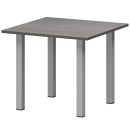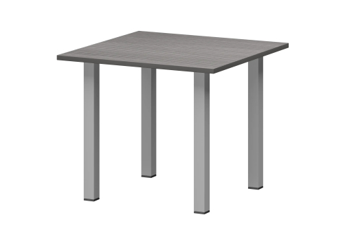 Классический дизайн, столы с «парящей» столешницей, с алюминиевыми проставками. Фурнитура - матовые ручки и квадратные опоры на тумбах и шкафах. Фактура ЛДСП сделана по технологии тиснения «шпон».