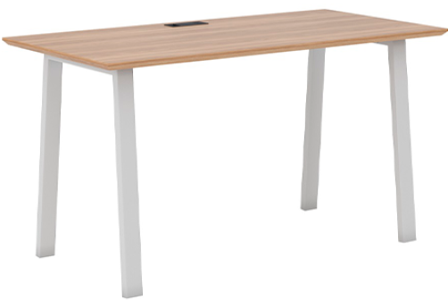 Изюминка серии - столы и бенчи на металлических опорах А-образной формы, обтянутые износостойкой пленкой в текстуре светлого дерева. А также минималистичный дизайн, большая линейка мебели для хранения, тканевые экраны, столешница с скосом.