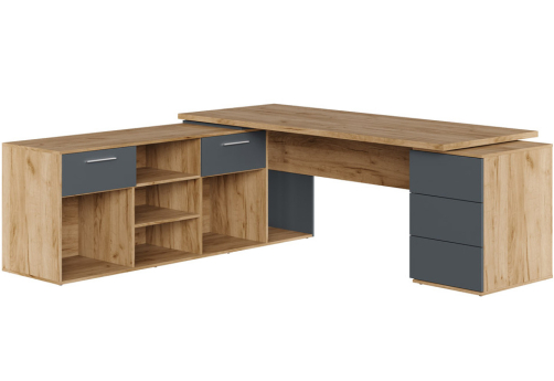 Стол письменный на опорной креденции левый Фредерик, цвет дуб крафт + антрацит