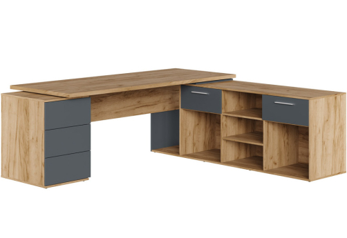 Стол письменный на креденции и тумбе правый Фредерик, цвет дуб нордик + антрацит
