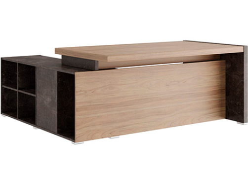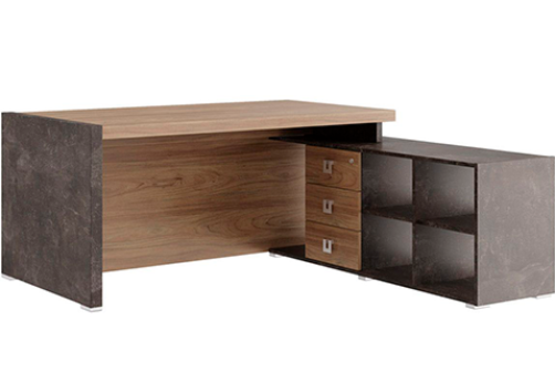 Стол письменный с асимметричными опорами левый Челси, цвет вяз + бетон темный