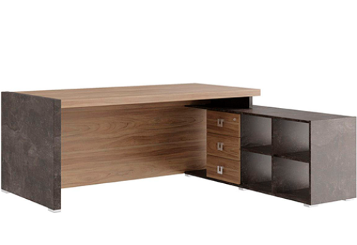 Стол письменный на опорной тумбе (левый/правый) Челси, цвет вяз + бетон темный