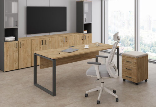 Рабочие столы для руководителя на О-образных металлических опорах, столы на опорных греденциях, столы переговоров оптимальных размеров, приставные элементы, удобные системы хранения в офисе – все это Сити Офис Директ.