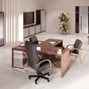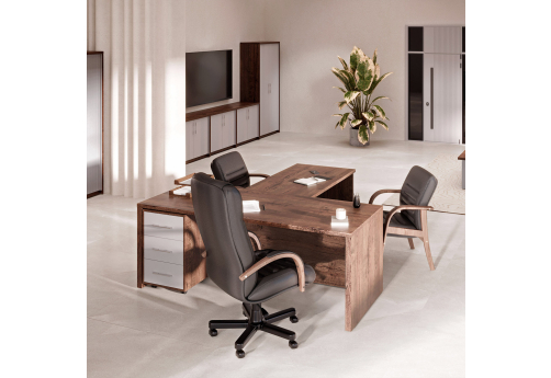 Современная качественная мебель для кабинета руководителя, выполненная из ЛДСП, МДФ с покрытием ламинатом и эмалью. Модельный ряд позволяет полностью укомплектовать рабочее место руководителю, а также переговорную комнату.
