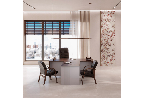 Современная качественная мебель для кабинета руководителя, выполненная из ЛДСП, МДФ с покрытием ламинатом и эмалью. Модельный ряд позволяет полностью укомплектовать рабочее место руководителю, а также переговорную комнату.