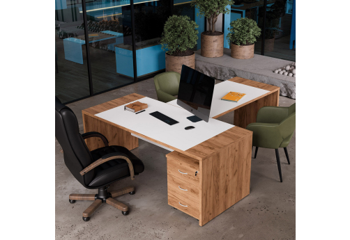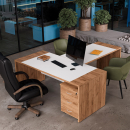 Стол письменный с брифинг-приставкой Стинг, цвет дуб крафт + белый