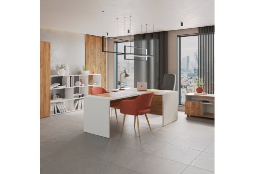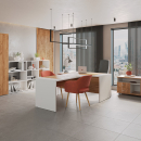 Кабинет Стинг - качественные материалы, толстые столешницы, микс цветов, большая линейка шкафов и тумб, переговорные столы на металлических опорах – все это позволит обустроить недорогой имиджевый кабинет для современного руководителя. Возможно изготовление полок шкафов под цвет каркасов.