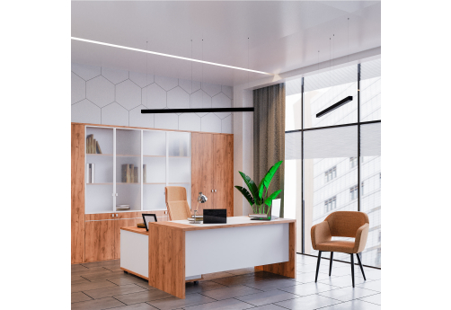 Кабинет Стинг - качественные материалы, толстые столешницы, микс цветов, большая линейка шкафов и тумб, переговорные столы на металлических опорах – все это позволит обустроить недорогой имиджевый кабинет для современного руководителя. Возможно изготовление полок шкафов под цвет каркасов.
