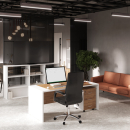 Кабинет Стинг - качественные материалы, толстые столешницы, микс цветов, большая линейка шкафов и тумб, переговорные столы на металлических опорах – все это позволит обустроить недорогой имиджевый кабинет для современного руководителя. Возможно изготовление полок шкафов под цвет каркасов.