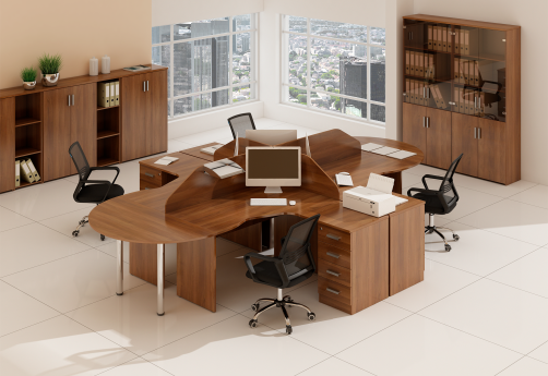 Традиционная, надежная офисная мебель. Выглядит благородно и эстетично.