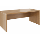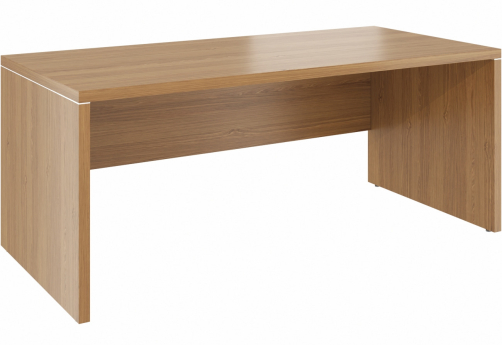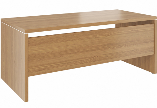 Современная качественная мебель для кабинета руководителя - столы с передними панелями из МДФ, с хромовыми декоративными проставками в цвет лицевой фурнитуры. Тумбы и шкафы с МДФ-фасадами.