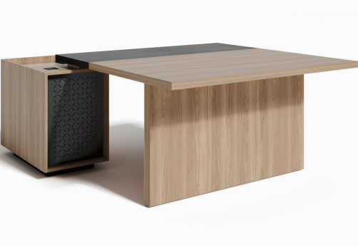 Серия Франклин Люкс – комфортная мебель в кабинет руководителя. Столы на дизайнерском металлокаркасе в актуальном цвете дуб в сочетании с антрацитом. Прямые линии, современный дизайн, элементы домашнего уютного кабинета.