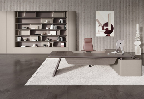 Стол руководителя левый Амадеус, цвет серебристый жемчуг