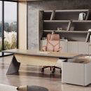 Элитная мебель в кабинет руководителя. Столешницы со сложной кромкой с обратным скосом. Благородные цвета, высококачественные материалы. Тумбы с коммуникационными блоками, шкафы с подсветкой.