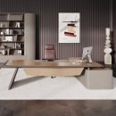 Элитная мебель в кабинет руководителя. Столешницы со сложной кромкой с обратным скосом. Благородные цвета, высококачественные материалы. Тумбы с коммуникационными блоками, шкафы с подсветкой.