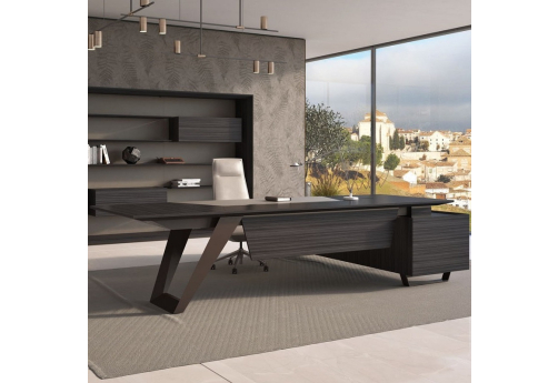 Мебель премиум-класса для кабинета руководителя разработана с учетом тенденций мирового современного дизайна и выполнена из натуральных высококачественных материалов - шпон ценных пород дерева, кожа, металл.
