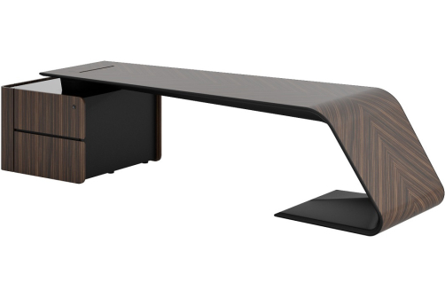 Элитный кабинет руководителя - шпон эбенового дерева с черной матовой покраской, современный дизайн, плавные линии, модульный формат столов и шкафов.