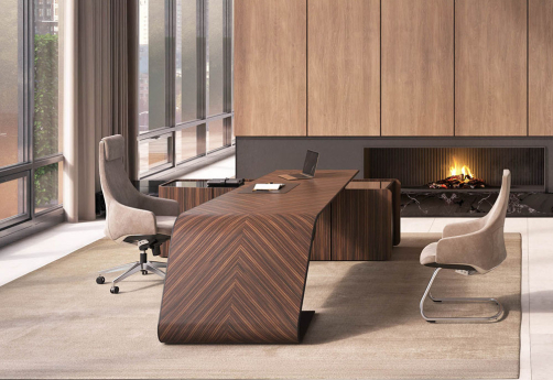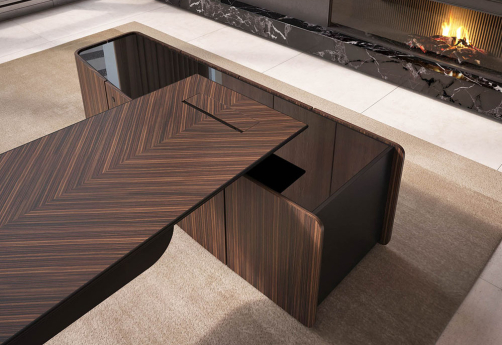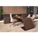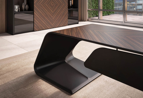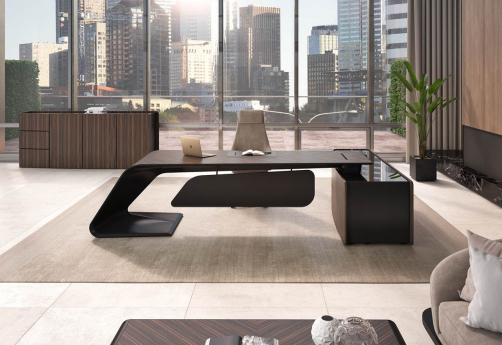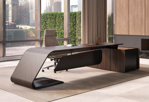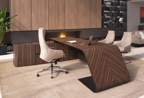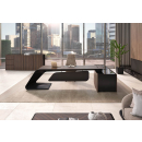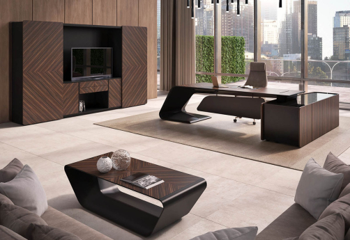 Элитный кабинет руководителя - шпон эбенового дерева с черной матовой покраской, современный дизайн, плавные линии, модульный формат столов и шкафов.