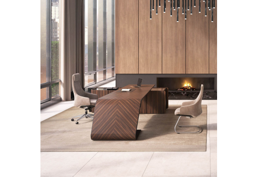 Элитный кабинет руководителя - шпон эбенового дерева с черной матовой покраской, современный дизайн, плавные линии, модульный формат столов и шкафов.