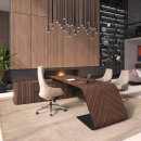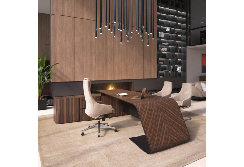 Элитный кабинет руководителя - шпон эбенового дерева с черной матовой покраской, современный дизайн, плавные линии, модульный формат столов и шкафов.