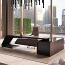 Элитный кабинет руководителя - шпон эбенового дерева с черной матовой покраской, современный дизайн, плавные линии, модульный формат столов и шкафов.