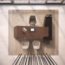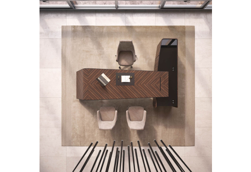 Элитный кабинет руководителя - шпон эбенового дерева с черной матовой покраской, современный дизайн, плавные линии, модульный формат столов и шкафов.