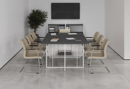 Минималистичный стиль лофт, дизайнерские опоры у столов руководителей, журнальных столов, столов для переговоров, металлические каркасы у стеллажей, наборные шкафы - все это современная серия Миллениум Директ.