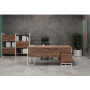 Минималистичный стиль лофт, дизайнерские опоры у столов руководителей, журнальных столов, столов для переговоров, металлические каркасы у стеллажей, наборные шкафы - все это современная серия Миллениум Директ.