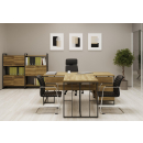 Минималистичный стиль лофт, дизайнерские опоры у столов руководителей, журнальных столов, столов для переговоров, металлические каркасы у стеллажей, наборные шкафы - все это современная серия Миллениум Директ.