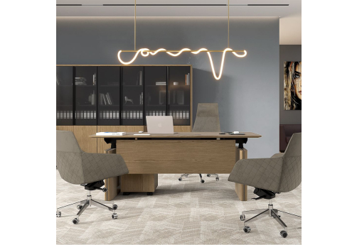 Стол руководителя с подъемным электрическим механизмом с памятью 4 уровней высоты. Две телескопические колонны 80х50 мм, выдвижная часть 75х45 мм, в каждой установлен электрический мотор для регулировки высоты от 73 до 122 см. Панель управления с разъемом для USB зарядки, укомплектована LCD дисплеем с 4 кнопками памяти. Верхний выдвижной ящик оснащен электронным сенсорным замком с возможностью открывания по отпечатку пальца.