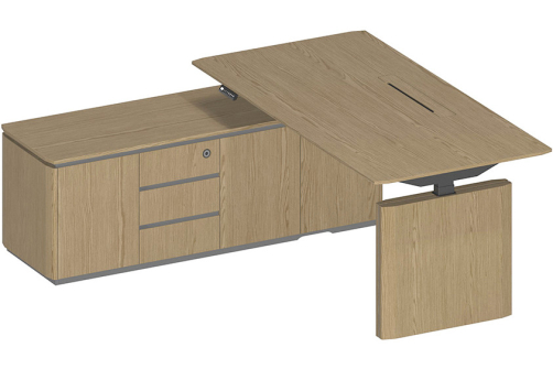 Стол руководителя на электроприводе на опорной тумбе левый Гауди, цвет дуб