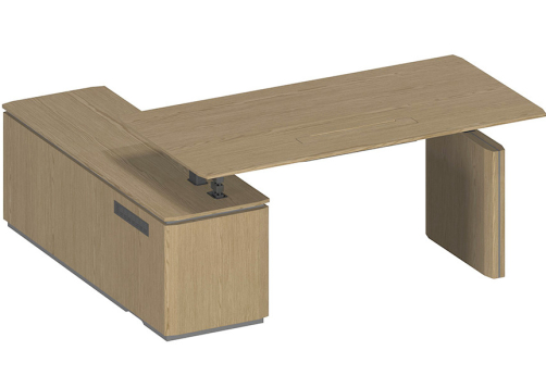 Стол руководителя на электроприводе на опорной тумбе левый без экрана Гауди, цвет дуб