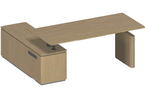 Стол руководителя на электроприводе на опорной тумбе левый Гауди, цвет дуб
