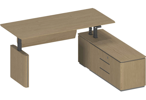 Стол руководителя с подъемным электрическим механизмом с памятью 4 уровней высоты. Две телескопические колонны 80х50 мм, выдвижная часть 75х45 мм, в каждой установлен электрический мотор для регулировки высоты от 73 до 122 см. Панель управления с разъемом для USB зарядки, укомплектована LCD дисплеем с 4 кнопками памяти. Верхний выдвижной ящик оснащен электронным сенсорным замком с возможностью открывания по отпечатку пальца.