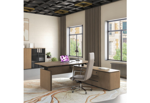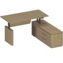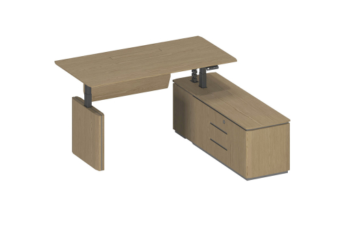 Стол руководителя с подъемным электрическим механизмом с памятью 4 уровней высоты. Две телескопические колонны 80х50 мм, выдвижная часть 75х45 мм, в каждой установлен электрический мотор для регулировки высоты от 73 до 122 см. Панель управления с разъемом для USB зарядки, укомплектована LCD дисплеем с 4 кнопками памяти. Верхний выдвижной ящик оснащен электронным сенсорным замком с возможностью открывания по отпечатку пальца.