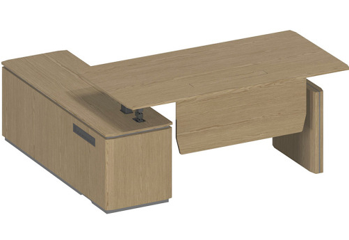 Стол руководителя на электроприводе на опорной тумбе левый Гауди, цвет дуб